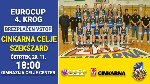 Člansko ekipo ŽKK Cinkarna Celje v četrtek čaka tekma 4. kroga skupine H evropskega pokala. V dvorani Gimnazije Celje – Center bo gostoval madžarski velikan Szekszard. Tekma se bo začela ob 18. uri.