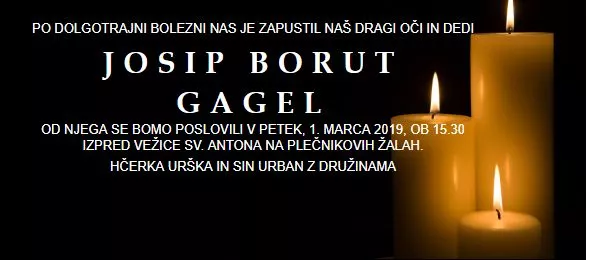 Slovenska košarka spet žaluje. Po dolgotrajni bolezni je včeraj v Ljubljani umrl Josip Borut Gagel, nekdanji trener moške in ženske vrste Olimpije. Uspešno je deloval tudi pri Slovanu in Iliriji.
