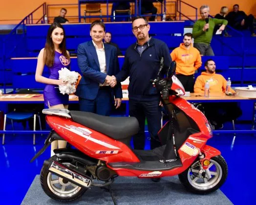 Med polčasom tekme s Splitom se je končala tudi letošnja velika nagradna igra, za katero smo poskrbeli v partnerstvu z Avto Debevc. Po izpolnjevanju nagradnih kuponov s strani kupcev sezonskih in posamičnih kart skozi vso sezono, je Bojan Horvat, predstavnik avtohiše Debevc, izžrebal srečnega dobitnika oz. v tem primeru srečno dobitnico novega skuterja. To je postala Irena Povalej! Čestitamo, dodajamo v taboru Heliosa.