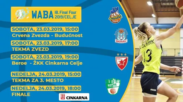 Ženski košarkarski klub Cinkarna Celje bo konec tedna gostitelj zaključnega turnirja najboljše četverice mednarodne jadranske WABA lige. V prvem sobotnem (15.00) polfinalu se bosta pomerila Crvena zvezda iz Beograda in Budućnost iz Podgorice. V drugem polfinalu (19.00) si bosta nasproti stala domača Cinkarna Celje in bolgarski Beroe.