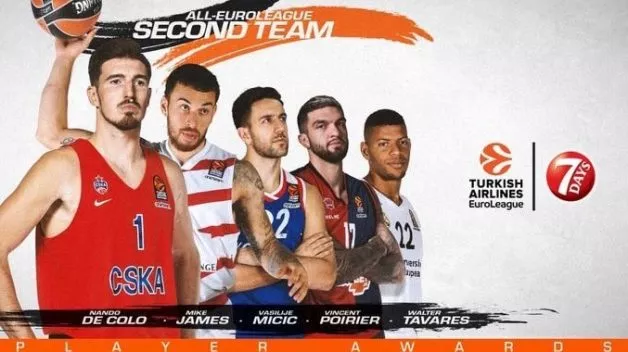 Druga najboljša peterka rednega dela sezone Nando de Colo (CSKA) Mike James (AX Armani Exchange Olimpia) Vasilije Micić (Anadolu Efes) Vincent Poirier (KIROLBET Baskonia) Walter Tavares (Real Madrid)I work hard so that one day I can look back and say “ I made it “ 💯💯💪🏼💪🏼🏀🏀 I want to thank @euroleague for this award. This is just the beginning. #FROMCV🇨🇻 #nevergiveup📈 #DJARMAI💯 pic.twitter.com/VJPgjSFsNb
