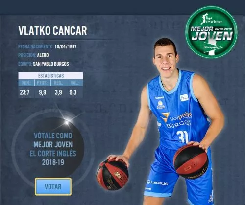 Za najboljšega mladega košarkarja v elitni španski ligi se poteguje 10 košarkarjev, starih do 22 let. Od vseh je statistično gledano najbolj učinkovit in uspešen prav 22-letni Vlatko Čančar, ki letos že drugo sezono nastopa v San Pablo Burgosu.