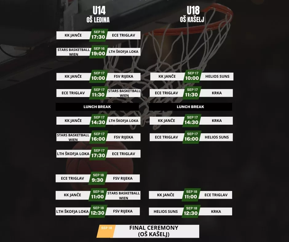 Še bolj zanimivo pa bo v kategoriji U14, kjer nam je poleg Triglava in košarkarskega kluba LTH Škofja Loka v čast gostiti tudi dva tuja predstavnika, Stars Basketball iz Dunaja in KK Flumen Sancti Viti. Vikend je torej rezerviran za ogled odličnih košarkarskih predstav, vljudno vabljeni, še dodajo v KK Janče.