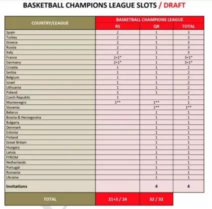 France and Germany may have three teams each in the Basketball Champions League RS+ 1 in QR. 3 in RS if FRA & GER won't have teams in EL