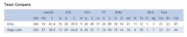 Košarkarji Krke so v tekmi sezone, kot so jo upravičeno sami poimenovali, razbili Mega Leks, 4. ekipo Lige ABA in aktualnega pokalnega prvaka Srbije. Z 18 točkami je vnovič zablestel Luka Lapornik, Nikola Ivanović pa je prispeval 24 za nebogljene goste. Mega Leks je nastopil brez 20-letnega branilca Ognjena Jaramaza, ki v Ligi ABA igral po 27.7. minute in beleži po 11.6 točke, 2.7 podaje in 2.2 ukradeni žog