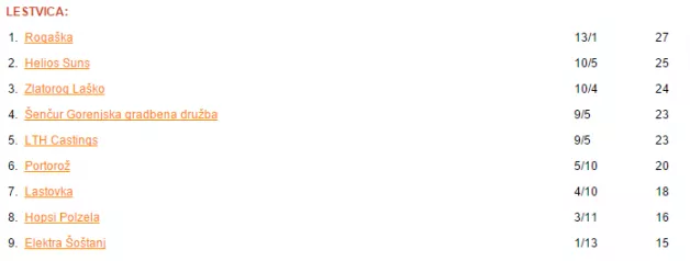 Preostale tekme sledijo v soboto. Ob 17.00 bo LTH Castings, ki še vedno ima nekaj možnosti za napredovanje, gostil vodilno Rogaško. Dve uri kasneje si bosta v Šoštanju nasproti stali ekipi Elektre in Zlatoroga, ob 19.30 pa sledi še mestni derbi med Lastovko in Helios Sunsi.