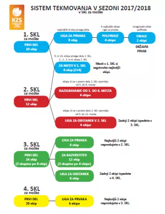 V sezoni 2017/2018 bo tako v 1. SKL za moške nastopilo 10 moštev. V drugi del bo napredovala osmerica, medtem ko se bosta zadnjeuvrščeni ekipi prvega dela za svoji mesti med prvoligaši v sledeči sezoni borili s štirimi najboljšimi ekipami 2. SKL.