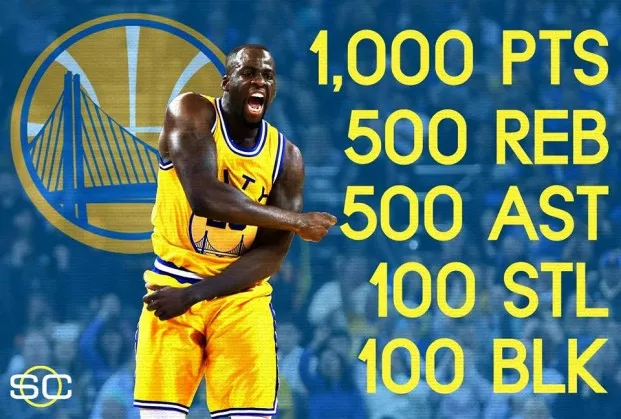 Krilo aktualnih prvakov iz Golden Statea in eden najbolj vsestranskih košarkarjev Draymond Green je postal prvi košarkar v zgodovini lige NBA, ki mu je v eni sezoni uspelo zbrati vsaj 1.000 točk, 500 skokov, 500 asistenc, 100 ukradenih žog in 100 blokad. Takšen učinek bo seveda težko ponoviti, še posebej če vemo, da redni del sezone še ni končan, Green pa bo z Bojevniki po vsej verjetnosti tudi v končnici odigral še kar nekaj tekem.