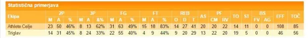 ATHLETE CELJE - Triglav 85:56 (23:17, 27:22, 17:10, 18:7) (1:0 v zmagah)
