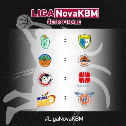 Liga Nova KBM, četrtfinale, 1. tekma, 11.5. Helios Suns - Rogaška (18.00) Krka - Šenčur GGD (20.00) 12.5. Zlatorog - LTH Castings (18.00) UOL - Tajfun (20.00) 2. tekme, 14.5. Rogaška - Helios Suns (18.00) Šenčur GGD - Krka (20.00) 15.5. LTH Castings - Zlatorog (16.00) Tajfun - UOL (18.00) Morebitne tretje tekme bodo na sporedu v torek, 17. maja, polfinalni niz pa se bo začel štiri dni za tem.