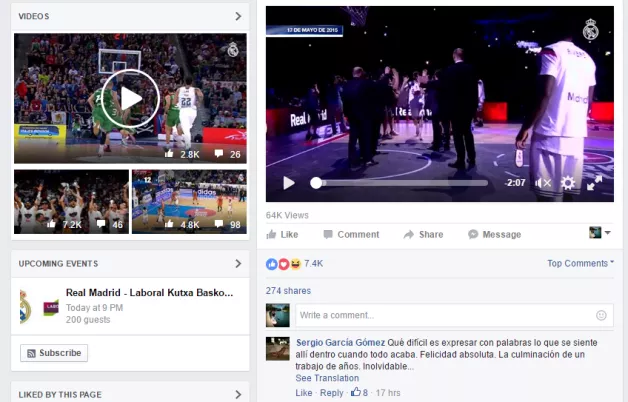 Za ogled tekme preko Facebooka kliknite na spodnjo sliko, nato pa pod videi kliknite na "UPCOMING EVENTS" kjer boste videli zavihek Real Madrid - Laboral Kutxa Baskonia.