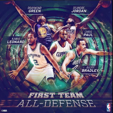 Leonard je tako prejel 260 točk, v prvi peterki pa so se mu pridružili še Draymond Green (Golden State Warriors,251 točk), DeAndre Jordan (Los Angeles Clippers, 137 točk), Avery Bradley (Boston Celtics, 149 točk), in Chris Paul (Los Angeles Clippers, 148 točk). Kot zanimivost naj dodamo, da je bil Paul tokrat že petič zapored imenovan v prvo peterko in šestič v karieri, med tem, ko so bili Leonard, Green in Jordan v prvo peterko imenovani drugič zapored, za Bradleya pa je to prvo imenovanje med najboljših pet.