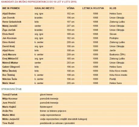 TEKME SLOVENIJE U18 NA EVROPSKEM PRVENSTVU DIV. A 2016 (Samsun, Turčija):