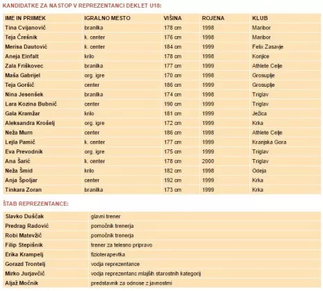 Slovenija bo sicer med dekleti U18 še sedmo zaporedno leto igrala v diviziji A. Evropsko prvenstvo bo letos potekalo na Madžarskem, v Šopronu, med 23. in 31. julijem. Žreb skupin za prvi del tekmovanja do naših deklet ni bil milosten, saj jih je posadil v skupino D, skupaj s Hrvaško,Madžarsko in Francijo. Vse tri so s temi generacijami med dekleti U16 nastopale med evropsko elito. Košarkarice iz dežele galskih petelinov so bile na koncu 4., gostiteljice letošnjega prvenstva 6., naše južne sosede pa 10.
