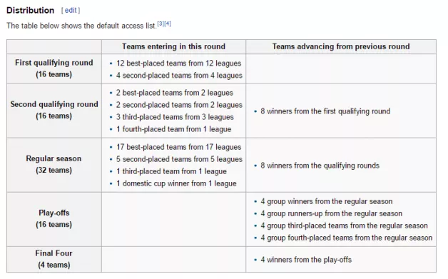 V 1. krogu se bo 16 ekip podalo v dvoboje s tekmama doma in v gosteh. Zmagovalci 1. kola bodo napredovali v 2. krog, kjer se bodo srečali z novimi osmimi ekipami, zmagovalci parov pa si bodo zagotovili mesto v Ligi prvakov. Med kvalifikanti ne bo nobene izmed ostalih slovenskih ekip.
