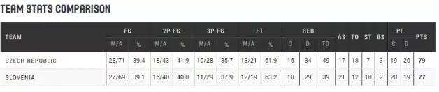 Slovenija – ČEŠKA 77:79* (15:23, 18:11, 12:16, 21:16, 11:13)