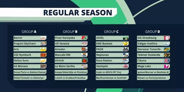 Po žrebu v Münchnu je jasno, s kom se bodo Helios Sunsi pomerili v novoustanovljeni Ligi prvakov. Pet ekip je že znanih, med njimi tudi turški Banvit z Gašperjem Vidmarjem in trenerjem Sašom Filipovskim, še dve se skupini A priključita iz kvalifikacij.