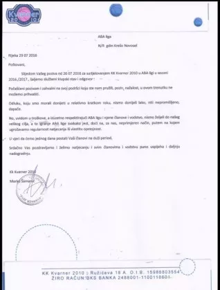 Kvarner se je zahvalil za povabilo (foto: Facebook KK Kvarner 2010)[/caption]