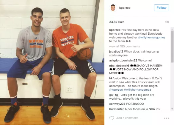 Leto dni po tem, ko je Latvijec Kristaps Porzingis prišel v New York in si že v svoji krstni sezoni ustvaril ime, bo moči ponovno združil z nekdanjim soigralcem, s katerim sta pri španski Sevilli skupaj preživela dve sezoni (2013-2015). Vodstvo New York Knicksov je v svoje vrste namreč pripeljalo mladega španskega centra Willy Hernangomeza (211 cm, 1994).
