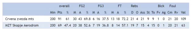 Crvena zvezda – MZT 91:69 (27:20, 22:10, 20:16, 22:23)