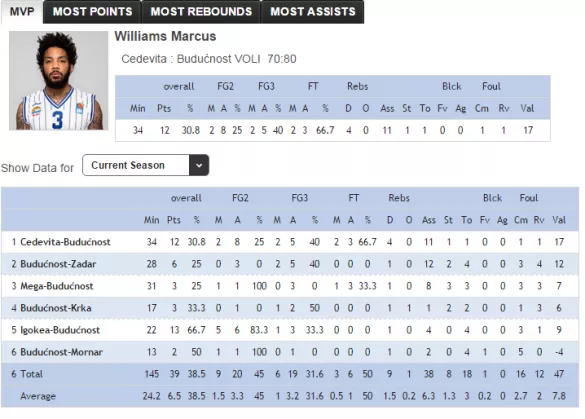 »Prišel je, da bi bil nosilec igre. A v zadnjem času izgleda precej slabo,« je učinek in igro Marcusa Williamsa (191 cm, 1985) za Vijesti.me komentiral trener Budućnosti Vlado Šćepanović, ki očitno pričakuje več od igralca evroligaškega pedigreja.
