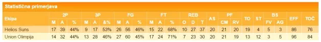 Helios Suns – UNION OLIMPIJA 76:84 (20:17, 23:17, 19:24, 14:27)