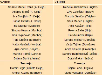 Vrhunec dogajanja bo nedvomno tekma članic (18.00), kjer bodo nastopile košarkarice vseh devetih klubov 1. SKL za ženske. Klube smo tokrat v sodelovanju z Združenjem ženskih klubov Slovenije razdelili na vzhod in zahod, s čimer smo dobili dve selekciji, ki se bosta pomerili med seboj. Vzhodno selekcijo bodo sestavljale košarkarice Athlete Celje, Maribora, Konjic in Janine, zahodno selekcijo pa košarkarice Triglava, Ilirije, Ježice, Grosupljega in Domžal.