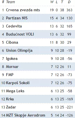 Beograjska kluba Crvena zvezda in Partizan ostaja na vrhu Lige ABA; zvezdaši so odpravili Igokeo, Partizan pa FMP. Slabše pa se je pisalo 3. in 4. ekipi lige – Cedevita je klonila proti Krki, Budućnost pa je v osmih tekmah doživela še peti poraz. Tokrat je klonila doma - z 78:71 jo je porazil Mornar, za katerega je Antabia Waller prispeval 33 točk (5/11 za 3), ključna pa je bila blokadar Balše Radunovića pri rezultatu 73:72.