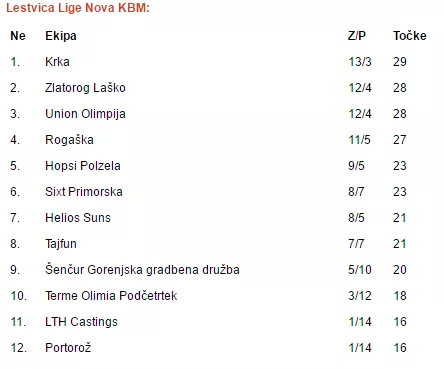 Košarkarji Krke so se s trinajsto zmago zavihteli na vrh Lige Nova KBM. Tokrat so bili boljši od Rogaške, proti kateri so niz zmag podaljšali na sedem. Rogaška je klonila prvič po šestih zaporednih zmagah, kljub vsemu pa še naprej ostaja povsem blizu vrha lestvice Lige Nova KBM.