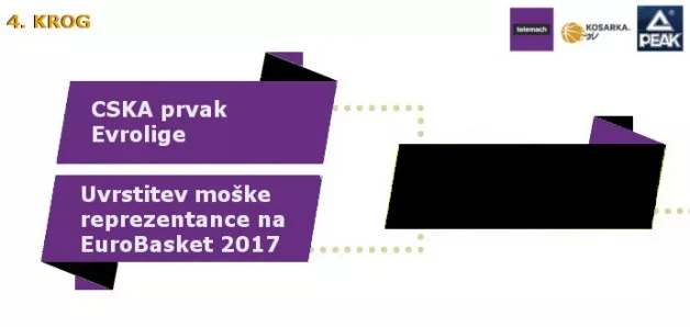 V četrtem krogu letošnjega izbora za NAJ dogodek leta 2016 se bosta udarila moskovski CSKA, ki je sedmič v zgodovini kluba osvojil evroligaški naslov in slovenska moška reprezentanca, ki se je brez poraza priborila nastop na letošnjem EuroBasketu 2017. Na vas je, da v anketi spodaj oddate glas za enega od kandidatov, v kolikor pa želite sodelovati tudi v nagradni igri, morate svoj glas oddati tudi na facebook strani Košarka, I like. Med vsemi sodelujočimi bomo vsak dan izžrebali 2 nagrajenca, ki bosta prejela praktični nagradi, ki jih podarjata sponzorja izbora – Telemach in PEAK Sport Slovenija.