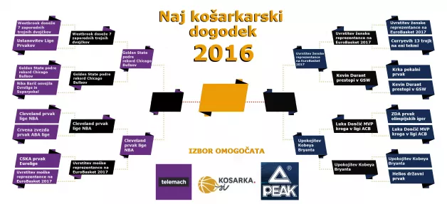 Dragi ljubitelji košarke, pred nami je že 1. polfinalni obračun izbora za NAJ košarkarski dogodek leta 2016, v katerem boste prav vi izbrali dogodek, ki je po vašem mnenju v letu 2016 najbolj zaznamoval košarkarsko sceno doma in po svetu.