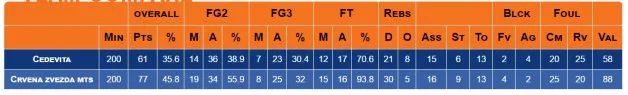 Cedevita – CRVENA ZVEZDA 61:77 (18:22, 21:24, 9:19, 13:12)