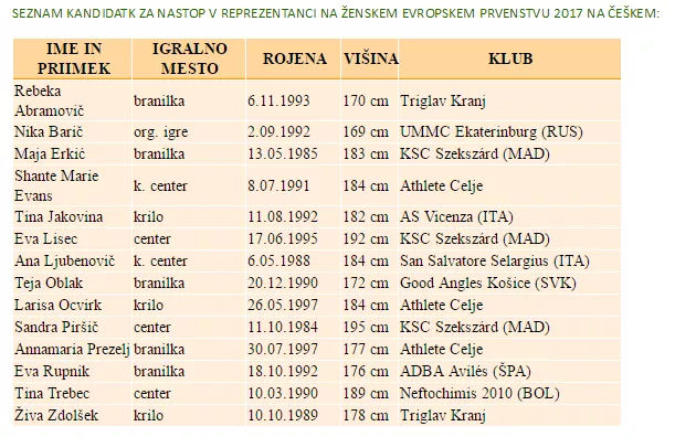 "Pri sestavi spiska za začetek reprezentančnih priprav smo stavili na preverjene košarkarice, ki so Sloveniji priborile zgodovinski nastop na evropskem prvenstvu. Spremljali smo jih skozi celotno sezono in veseli nas, da so vse zdrave in imajo za seboj uspešne klubske sezone, v katerih so bile oziroma so še med ključnimi igralkami svojih ekip. Dvanajsterici, ki smo jo imeli na voljo v kvalifikacijah se bosta na začetku priprav priključili Shante Marie Evans in Larisa Ocvirk. Za Evansovo upam in verjamem, da bo pravočasno pridobila potrebno dokumentacijo, saj bi nam lahko s svojo kakovostjo, znanjem in pozitivno energijo zagotovo izdatno pomagala. Larisa Ocvirk je ena izmed igralk, na katere slovenska ženska košarka v prihodnosti resno računa. Predvsem z igrami v drugem delu sezone, ko je bila tudi med ključnimi igralkami Celja ob osvojitvi WABA lige, pa si je zaslužila uvrstitev na širši seznam kandidatk za nastop na evropskem prvenstvu. V strokovnem štabu se veselimo začetka priprav, skozi katere bomo skušali dekleta maksimalno pripraviti na zgodovinski nastop Slovenije med evropsko elito."