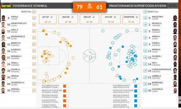 Domačin je bil razpoložen - tako kot na prvih dveh tekmah. Epska je bila še posebej prva, ko je Panathinaikos zapravil +16, po tem pa se ni več pobral. Tudi nocoj ni bil konkurenčen. Fenerbahče je bil še posebej dominanten v metu za tri točke (13/27 Vs 5/24).