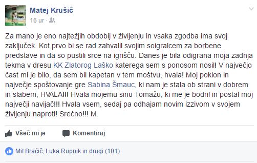 Sinoči so Laščani končali sezono, v polfinalu je zdesetkano vrsto Zlatoroga porazila Rogaška in se prebila v finale, Laščani pa na počitnice. Omenjena tekma pa je bil zadnja tudi za dosedanjega kapetana Laščanov 30-letnega Mateja Krušiča. Velik fan Sidharte je obelodanil na Facebooku, da je odigral zadnjo tekmo v dresu pivovarjev. Kje bo nadaljeval svojo športno pot, ni jasno.