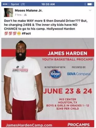 Razlog, zaradi katerega naj bi Harden napadalcem plačal 20.000 dolarjev, da Mosesa Jr. pretepejo in oropajo, naj bi se skrival v facebook objavi, v kateri se je Moses Jr. obdregnil ob Hardnov košarkarski kamp za otroke. Kot lahko preberete v objavi na desni, je Moses Jr. namignil, da ima Harden dovolj denarja, da mu ne bi bilo treba zahtevati tako visoke prijavnine, katere si večina otrok iz blokovskih naselij ne more privoščiti. Nato pa ga je poimenoval še Hollywood Harden.
