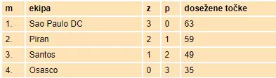 Sobota, 22. julij: PIRAN : Osasco 21:11 PIRAN : Sao Paulo DC 21:20 PIRAN : Santos 18:16