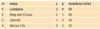 Sobota, 22. julij: LJUBLJANA : Mexico City 21:9 LJUBLJANA : Joinville 17:11 LJUBLJANA : Mogi das Cruzes 22:16