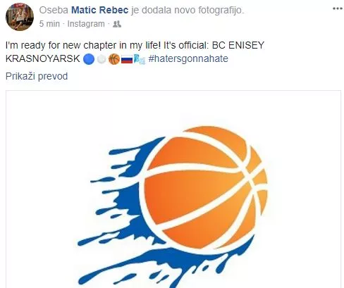 Slovenski reprezentant Matic Rebec bo kariero nadaljeval v ruskem klubu Enisej. Vest sta potrdila klub in igralec.