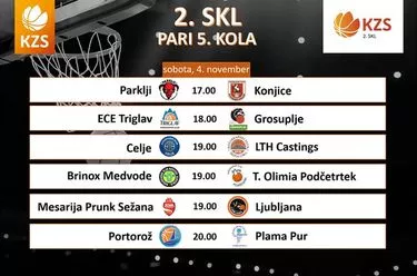 Na prvi tekmi petega kola 2. SKL so v soboto Parklji premagali Konjice, Triglav je bil boljši od Grosupljega. Ekipa Celja je ugnala LTH Castings, Medvode so izgubile proti Podčetrtku, Mesarija Prunk je premagala Ljubljano. Ob 20.00 bo Portorož gostil Plamo Pur.