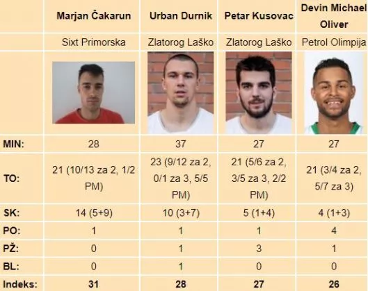 Ljubljanska Ilirija, vodi jo trener Saša Dončić, je zabeležila novo zmago. V Tivoliju so bili z 79:70 boljši od Krke. Blestel je domačin Žan Mark Šiško (190 cm, 1997), ki je v 35 minutah 25 točkam (kar 5/5 za 3) dodal sedem podaj, tri blokade in tri pridobljene žoge. To je bilo dovolj za 32 indeksnih točk ter naziv MVP 5. kroga Lige Nova KBM.
