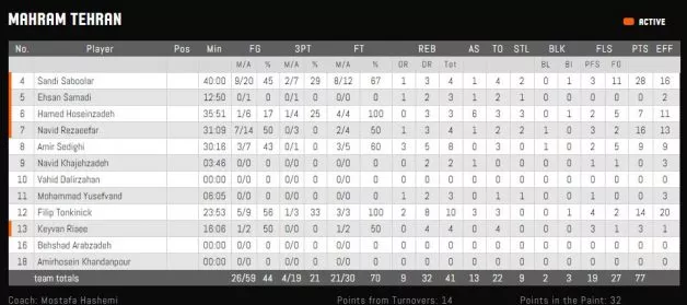 V iranski ligi ima Slovenija dva igralca: Sandi Čebular je član Mahrama, Mirza Begić pa igra za Petrochimi. V 6. krogu je zablestel Čebular, ki so ga Iranci preimenovali kar Saboolarja. V 40 minutah je 28 točkam dodal.