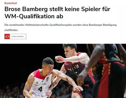 Zdaj pa je že jasno, da v reprezentanci ne bo Alekseja Nikoliča. Bamberg se je odločil, da reprezentantov ne bo pustil na tekme, ker želi v popolni zasedbi odigrati tekmo proti Valenciji, ki bo prav tako v polni zasedbi pričakala Nemce. Ki bodo lahko računali tudi na nesojeni reprezentančni trio Maodo Lo, Lucca Staiger in Patrick Heckmann. Tako so zapisali na nemškem spletnem portalu Infranken.de.