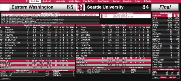 Slovenski košarkar Matej Kavaš je vnovič navdušil v Ligi NCAA I. Z osebnim rekordom doseženih točk (26 točk, 8 skokov, 2 asistenci) je Seattle University v seriji treh zaporednih zmag opravil še z ekipo Eastern Washington University, 84:65 je bilo. To je bila že četrta domača zmaga Seattlea, ki v tej sezoni še ni klonil doma. To je bila tudi prva tekma Kavaševega trenerja Jima Hayforda, ki se je meril poti svoji bivši ekipi. Predvsem po zaslugi našega igralca se je končalo zmagovito. Levji delež posla so domačini opravili v uvodnih 12 minutah, ko so ušli na 27:12.