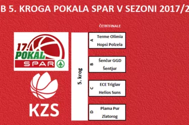 Na sedežu Košarkarske zveze Slovenije je bil danes opravljen žreb 5. krog Pokala Spar, v katerem bomo spremljali obračune Terme Olimia Podčetrtek : Hopsi Polzela, Šenčur GGD : Šentjur, Plama Pur : Zlatorog in ECE Triglav : Helios Suns.