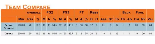 POL: Oliver 13 (6 skokov), Špan 17, Morgan 14 (8 skokov), Lorbek 8, Battle 14 (5 podaj), Hrovat 11.