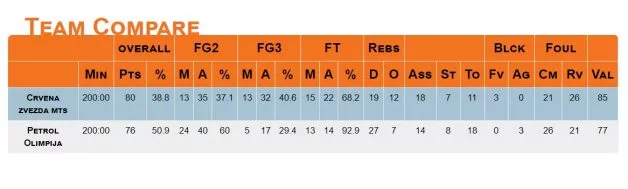 Olimpija Petrol se poražena, a z dvignjeno glavo vrača iz Beograda, kjer je nudila izvrsten odpor Crveni zvezdi, ki pa je na koncu le slavila – 80:76 je bilo. V domači vrsti je blestel branilec Taylor Rochestie (16), Jordan Morgan in Jan Špan sta prispevala po 15 za Olimpijo.
