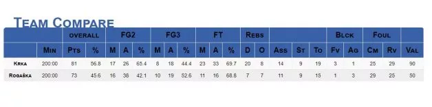 Rogaška: Kosić 2, Davis 21, Djuranović 6, Fon 20, Nikolič 5, Pajić 8, Šantelj 11.