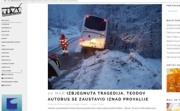 Okoli 2. ure zjutraj je avtobus zavoljo snega zdrsnil na relacij Nikšic – Šavnik. Kot piše in poroča Radio Tivat, se je avtobus ustavil tik nad prepadom! Med zdrsom ni bil nihče poškodovan. V čakanju na rešitev, okoli 6.00 so nadaljevali z vožnjo, ko so jim gasilci spravili avto na cesto, so bili košarkarji v bližnji restavraciji, ki so jo sredi noči odprli prav za njih!