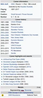 Za sabo imam 20 let košarkarske kariere. Ko sem kot mlad fant iz Dravograda prvič prijel žogo v roke, sem začel sanjati o igranju v največjih ekipah, slavnih dvoranah in na najpomembnejših tekmah. Te sanje sem uresničil. Danes tega ne bi pisal, če ne bi imel poleg vztrajnosti, sreče in nekaj talenta ob sebi tudi ljudi, ki se jim ob tej priložnosti želim zahvaliti.